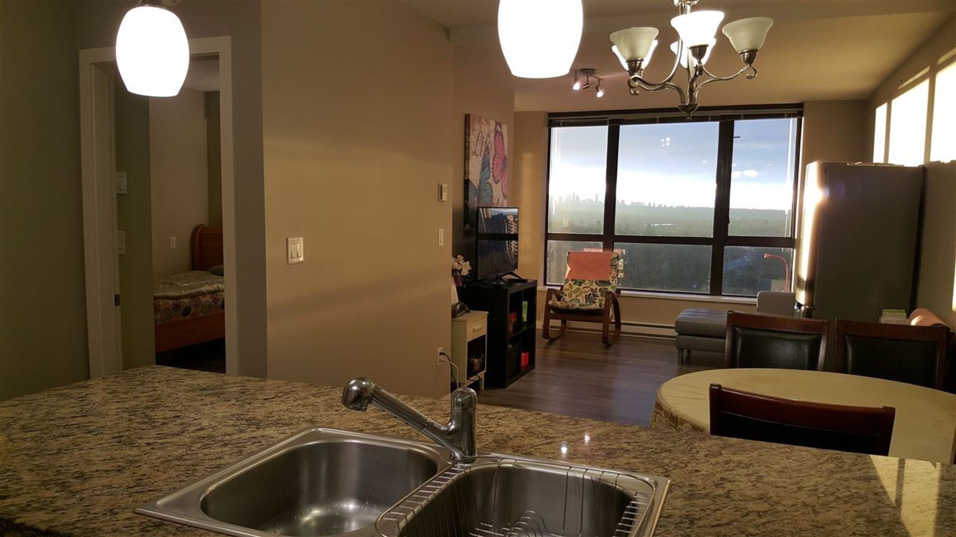 Spectacular View, View, & View of Mountains & City in Encore. Close to Lougheed Town Centre, skytrain, many restaurants, daycare, SFU, & Hwy #1. Bright 1 bed open concept layout with entire laminate flooring with stainless steel appliances, granite counter top, and breakfast bar. Beautiful City view balcony. Enjoy Amenities including roof top garden, steam room, fitness and yoga place & live-in caretaker. Includes 1 parking & 1 locker.
