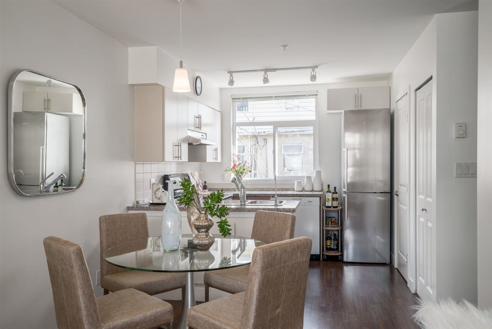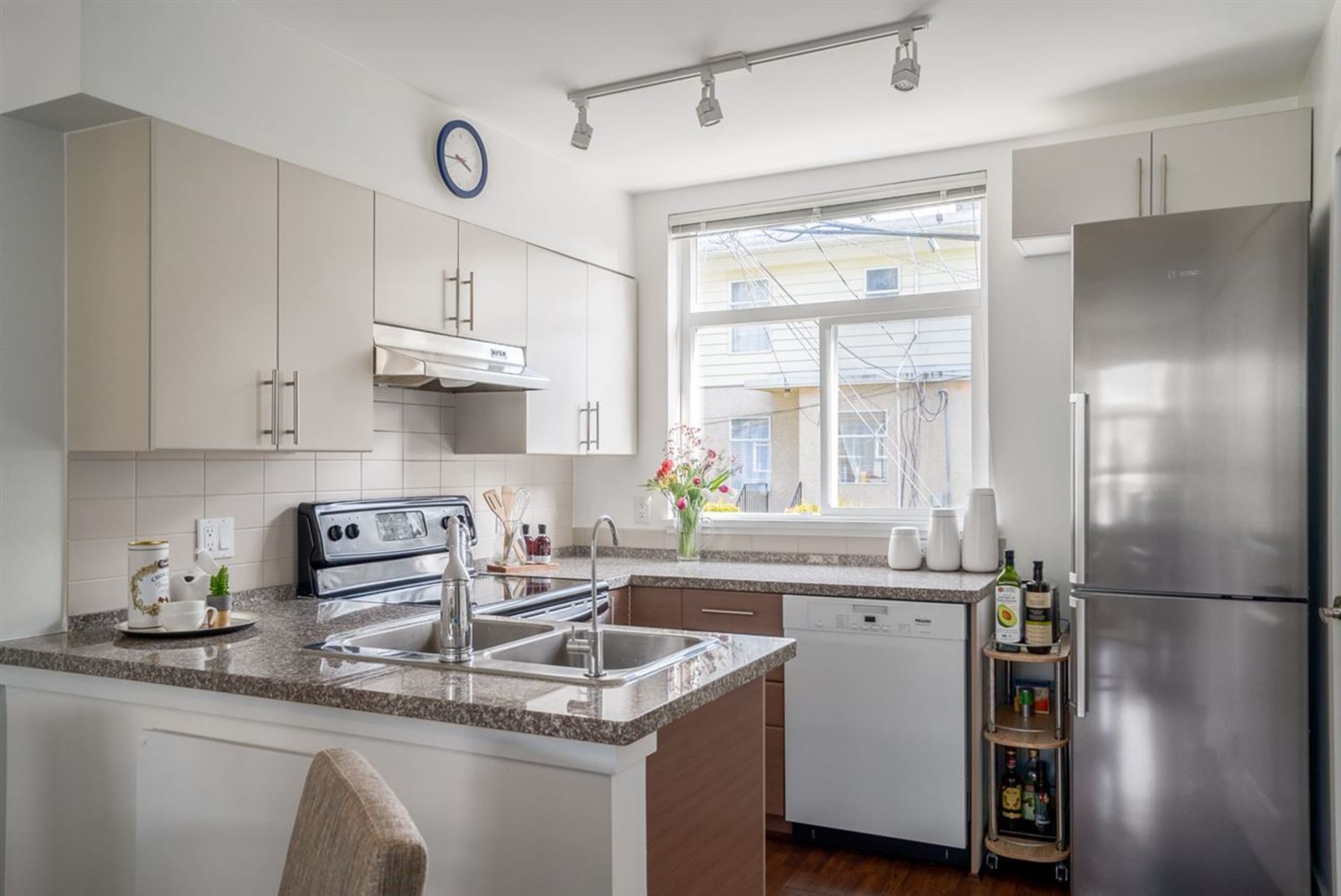 This rarely available FREEHOLD 4 bed, 3 bath gem is in the hub of the University district. From the moment you walk into this townhouse you feel at home. The main floor features a bright open floor plan, front to back windows, 9 FT ceilings, powder bath, pantry plus a South facing BBQ patio. Kitchen includes a new Miele washer/dryer & dishwasher, Bosch stiletto fridge & granite counters. Beautiful oak hardwood floors on the upper two bedroom levels set the stage as well as two balconies & reading nook. North facing views from the master complete this unique home. Love the location, minutes to every amenity, Pacific Spirit Park & the University Golf Club. Pets & rentals allowed; two parking. Open Sat April 21st, 1-3PM.