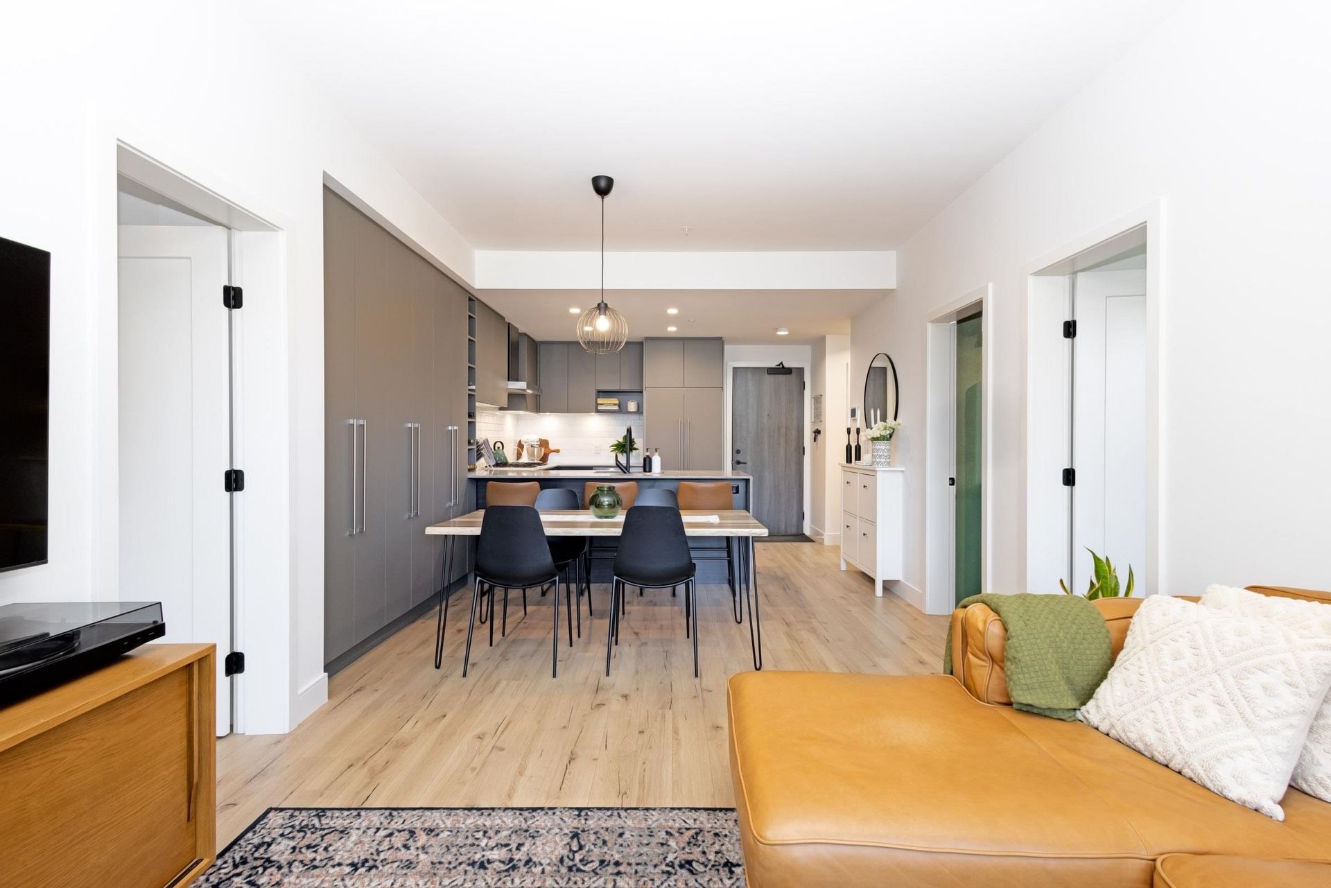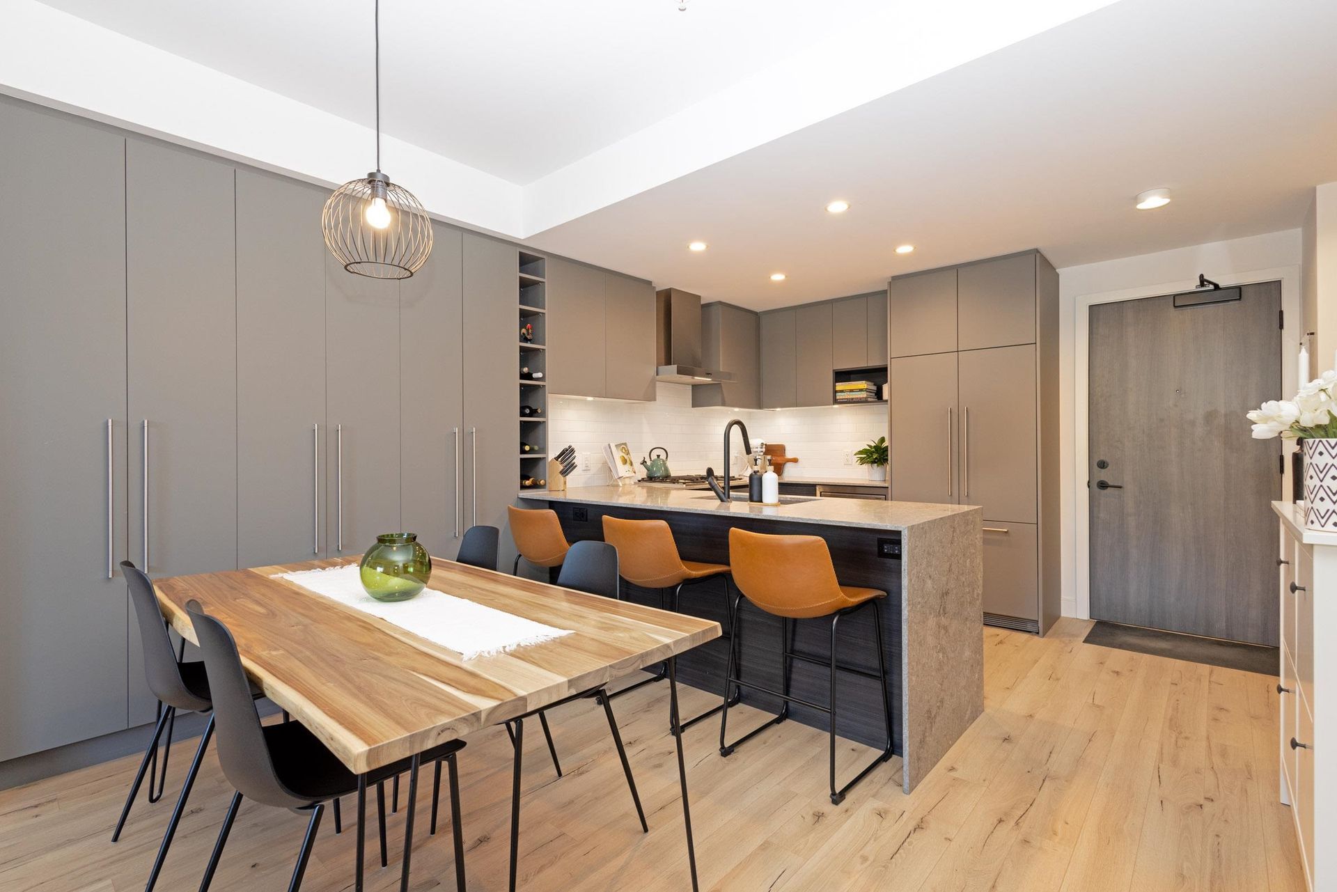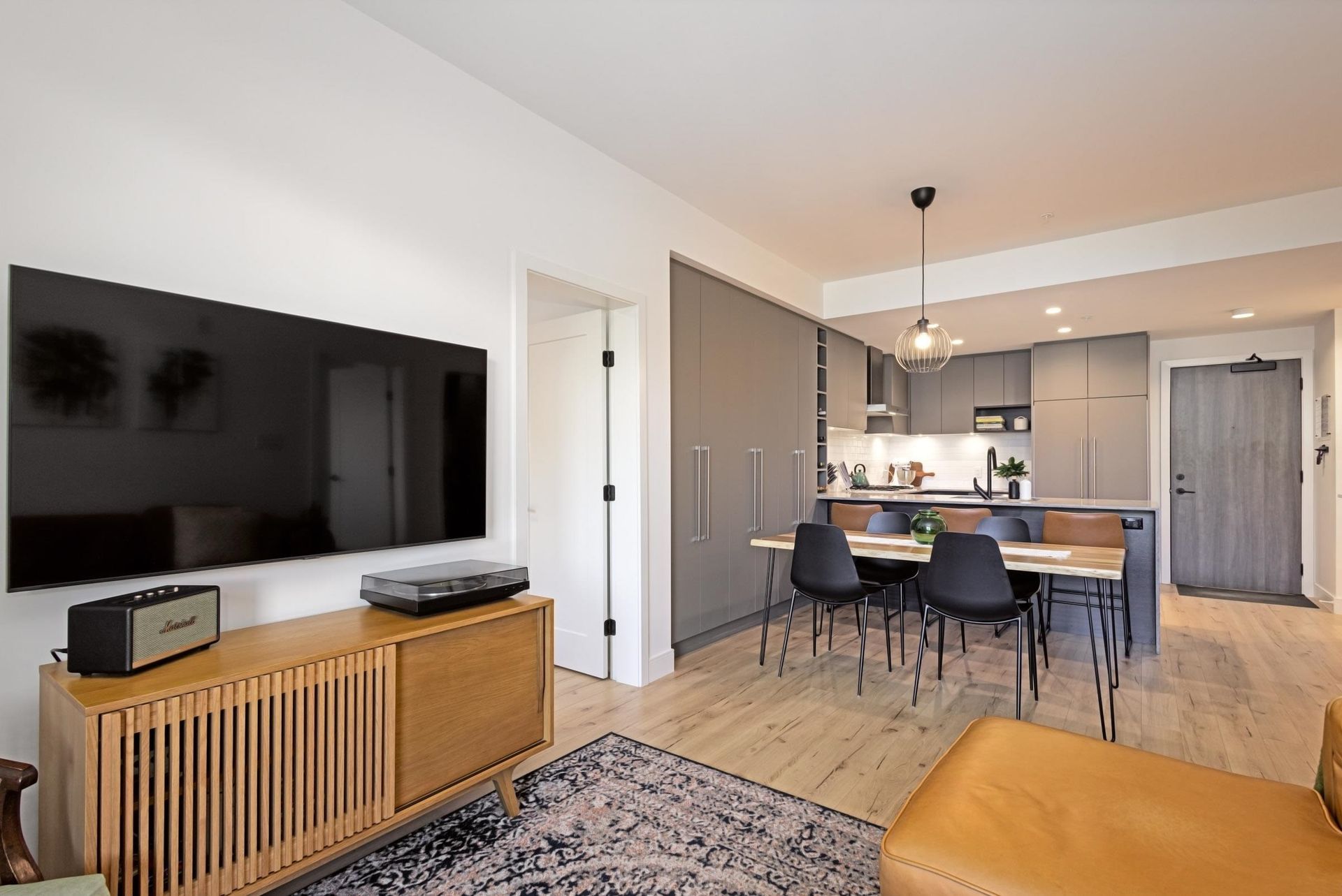 Electronic Avenue Offers this Meticulous & Modern Home with 2 Bed + 2 Bath + 2 Parking + 2 Storage Lockers + Bonus Den. Open Kitchen and Living Space w/ Amazing Built-ins Thru-out, Kitchen with Panel Covered Appliances, Gas Range & Breakfast Bar. Cross Hall Beds are perfect for Sharing a Living Space each w/ your own Bathrooms & lots of Closet Space. The Primary Bedroom feat's a European Style Walk-in Closet, 5 pc Ensuite & room for a King Size Bed. Convenient Den/Office space to work from Home & a Covered Balcony to Bbq year round with views to Shore Line Park & Greenspace. Enjoy World Class Amenities, Guest Suite, Kids Play Lounge, Workshop, Dog Wash Area & So Much More! Take A Stroll to Rocky Point Park, Breweries, Shops, Cafe's, Transit all located at your door step! By Appt Sat 2-4pm!