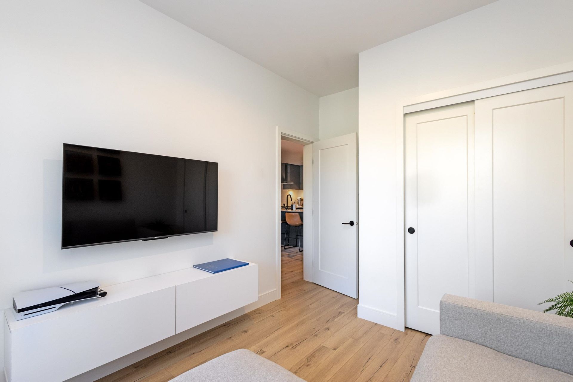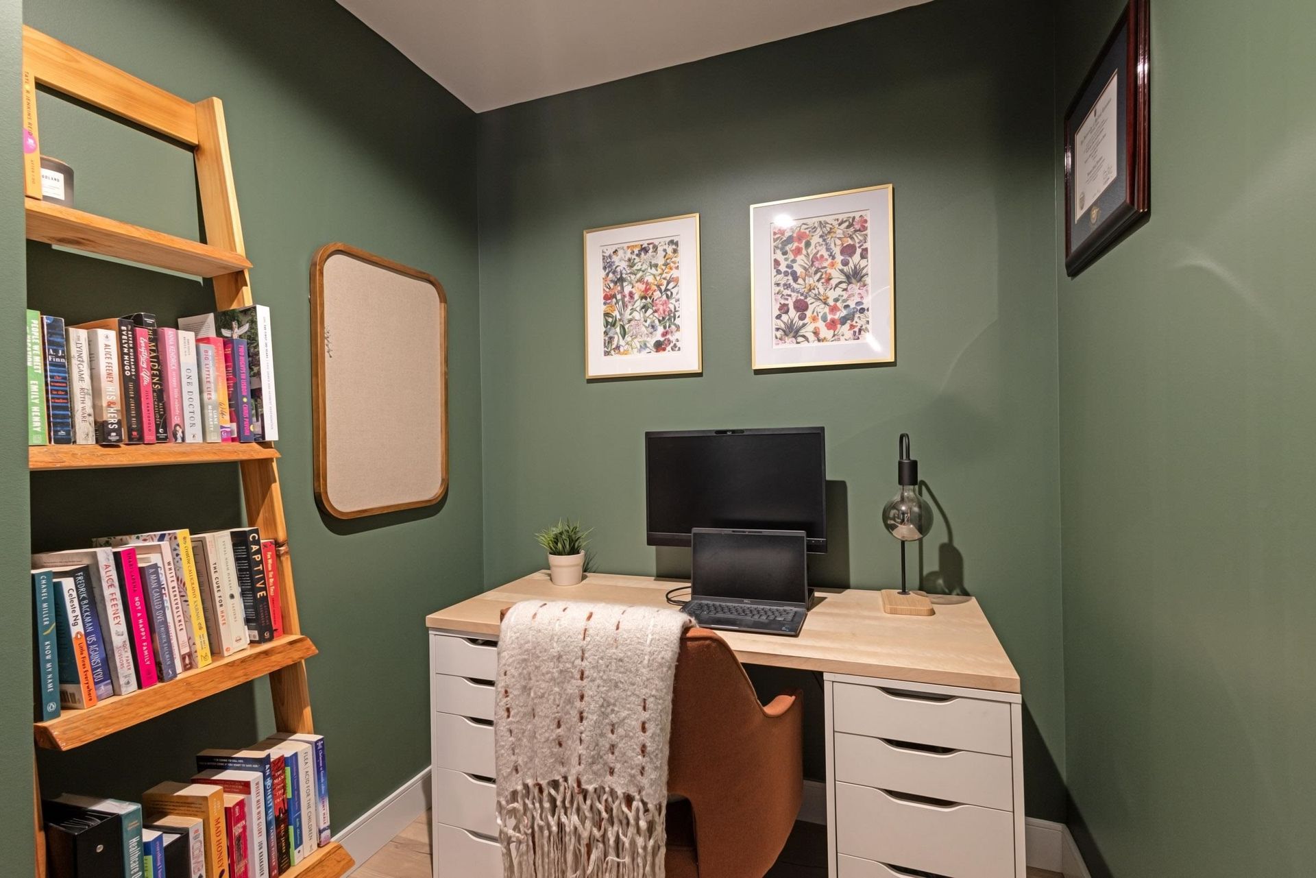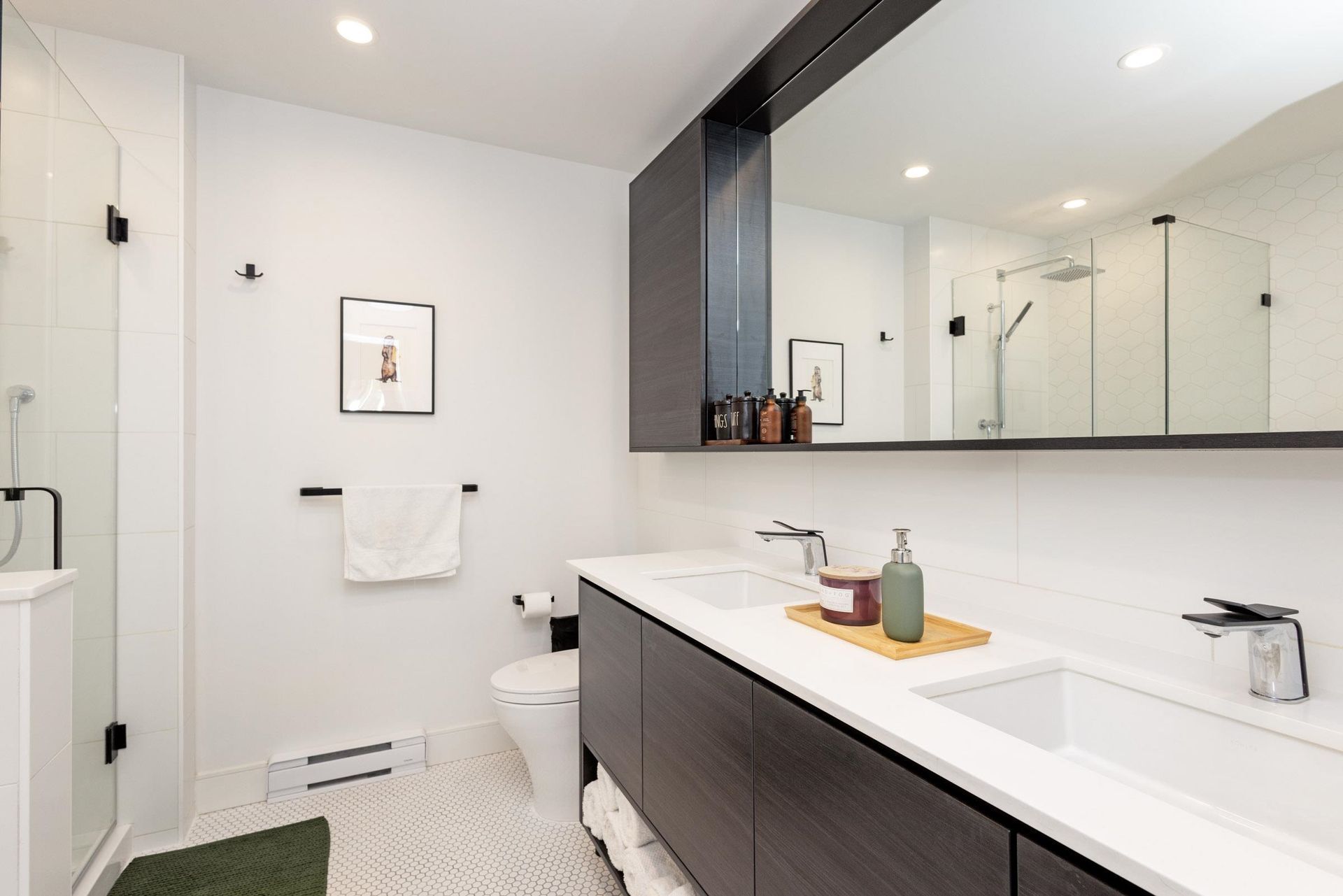 Electronic Avenue Offers this Meticulous & Modern Home with 2 Bed + 2 Bath + 2 Parking + 2 Storage Lockers + Bonus Den. Open Kitchen and Living Space w/ Amazing Built-ins Thru-out, Kitchen with Panel Covered Appliances, Gas Range & Breakfast Bar. Cross Hall Beds are perfect for Sharing a Living Space each w/ your own Bathrooms & lots of Closet Space. The Primary Bedroom feat's a European Style Walk-in Closet, 5 pc Ensuite & room for a King Size Bed. Convenient Den/Office space to work from Home & a Covered Balcony to Bbq year round with views to Shore Line Park & Greenspace. Enjoy World Class Amenities, Guest Suite, Kids Play Lounge, Workshop, Dog Wash Area & So Much More! Take A Stroll to Rocky Point Park, Breweries, Shops, Cafe's, Transit all located at your door step! By Appt Sat 2-4pm!