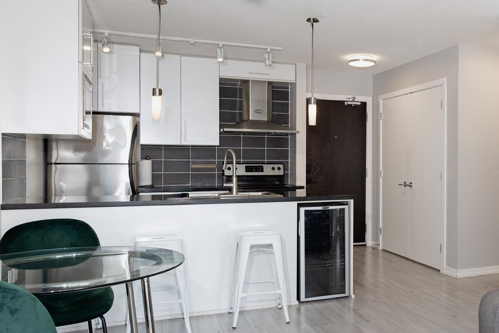 Amazing Espana almost 600sf 1 Bed & Den with Convenient 24 hour Concierge! Fully Furnished and Ready to Move in...Euro style Kitchen with Granite Counters, Breakfast Bar with Built-in Wine Cooler, 1 Parking & 1 Storage Locker complete this unit! Enjoy the South-West City & Water Views from your Covered Balcony Year Round. This Building offers World Class Amenities with an Indoor Pool, Hot Tub, Sauna, Gym, Party & Theatre Rooms, Courtyard, Kids Play area, and so Much More! A Prime Downtown Location in the Centre of it All...Take a Stroll to the Seawall, Parks, Theatres, Rogers Arena, BC Place, Costco, Shops, Restaurants, Bars and Caffe's at your Doorstep. Skytrain and Bus Lines make Access to the Rest of the City a Breeze! By Appointment Only!