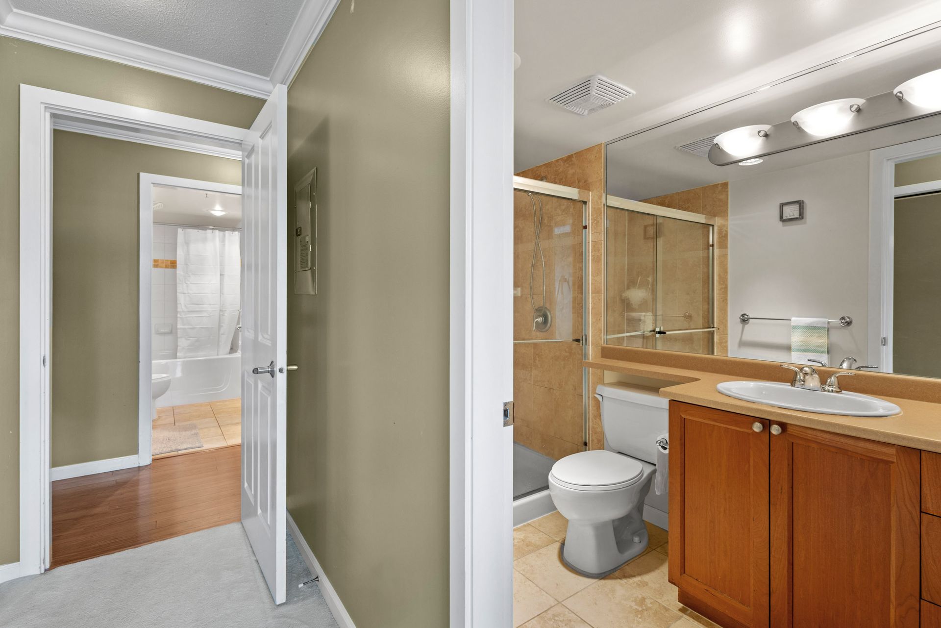 THE BEST LAYOUT and CORNER SUITE OFFERING 1121sqft OF SPACIOUS LIVING with a welcoming Foyer! Large Light-Filled Rooms, Gas Fireplace & Dining Area can accomadate Lg furniture, Floor to Ceiling Windows, Kitchen even has a Window, Great Breakfast Bar, Stainless Steel Appliances & access to your convered PATIO for year round BBq's. The Primary Bedroom is Huge w/ 2 Closets & an Ensuite w/ a Large Walk-in Shower. The Second Bedroom has brand new Carpet & just freshly painted. BONUS NEWER Full Size Washer/Dryer, 2 Parking & 1 Storage Locker. The Sinclair is located in the Sought After Newport Village where all your modern amenities are at your door. Amazing Pro-active Building w/ Gym, Gorgeous Gardens, XL Amenities Room w/ a Full Kitchen opens onto a Beautiful Patio. OPEN HOUSE SATURDAY 12-2PM & Sun 2-4pm!