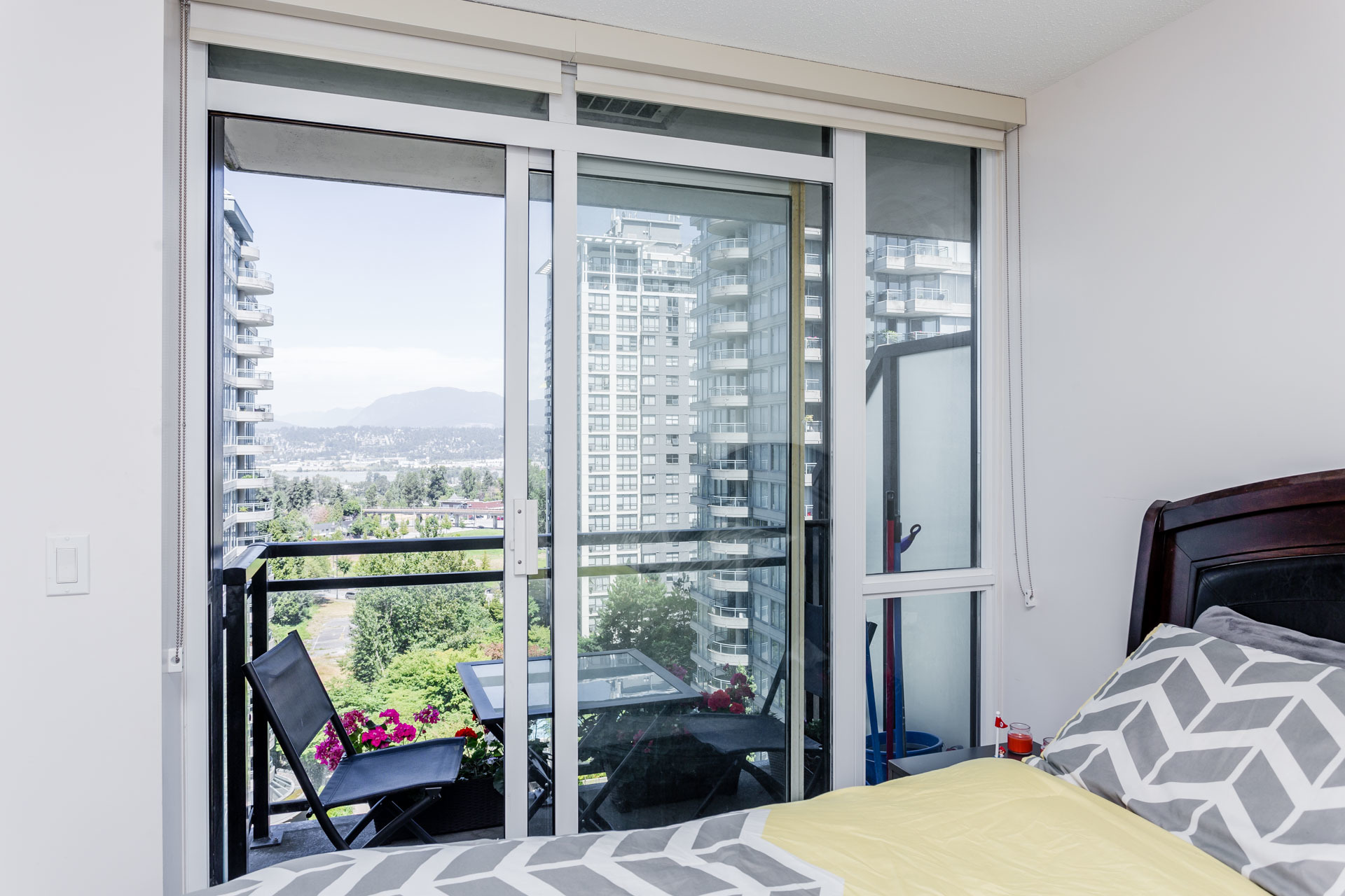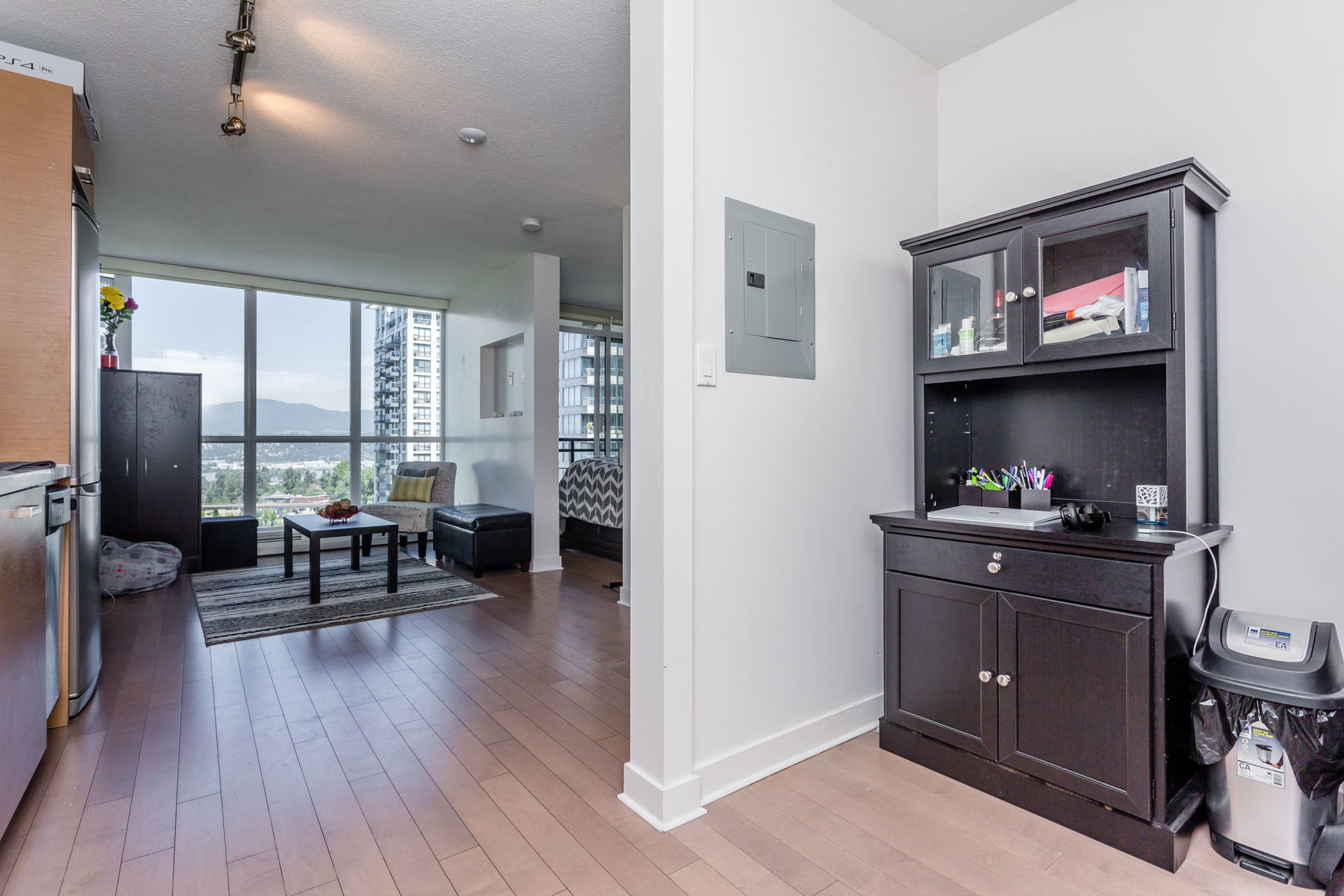 CORNER UNIT WITH THE BEST VIEW AND BEST LOCATION, off University Drive, next to Skytrain, which makes commuting convenient. Light colors make this a great space with balcony and bonus den, perfect for your office or study. VCC College, coffee shops and Surrey Central all just around the corner.. Investor Alert or First Time Home Buyers here is your opportunity to get into the market. Bring your cat as dogs aren't allowed. 1 parking and 1 storage locker included. Don't miss this ..First open Thursday Eve July 19th from 7 to 8pm + Saturday July 21st 2-4pm.